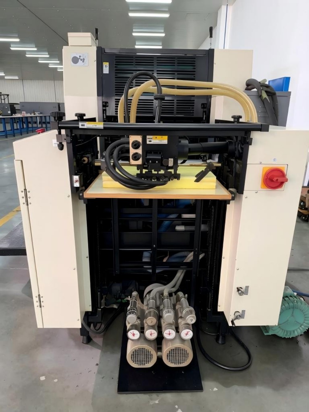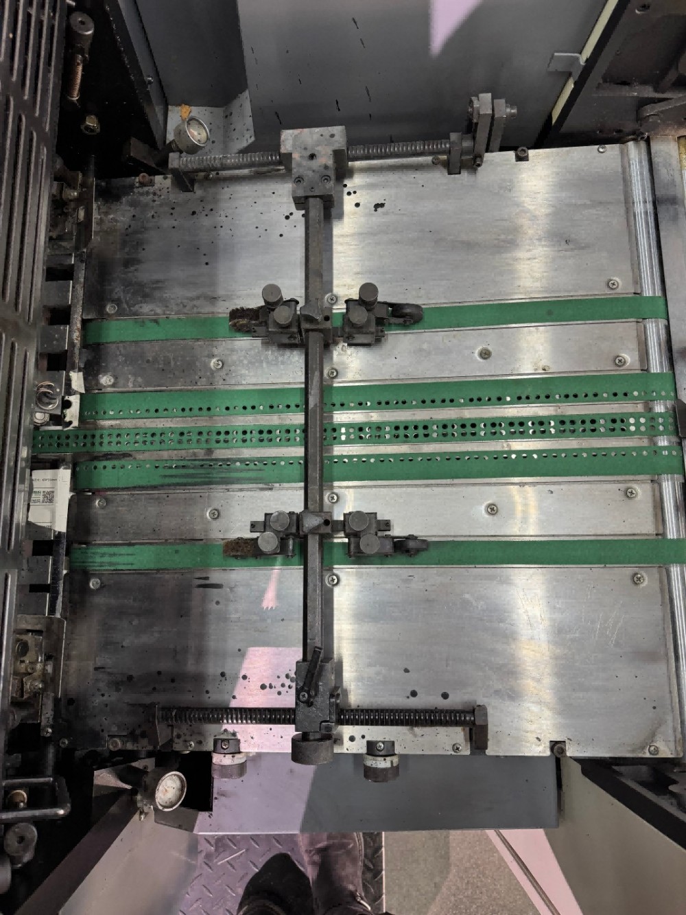 Pneumaattista ohjausta käytetään kytkimen ja kytkimen painemusterullien kanssa. Se reagoi nopeasti ja saa koko lehdistön toimimaan luotettavammin ja vakaammin. Levyn kiinnitysmekanismissa on pikaasemointilaite ja kiristyslaite. Nämä osat lyhentävät levyn vaihtoaikaa ja tehostavat työnvaihtoa. A2-kaksivärisessä kaupallisessa offsetpainokoneessa on vahva mekaaninen rakenne, jossa on valurautainen kiinteä pohja, sivulevyt ja telat. Tämä vahva rakenne tarjoaa korkean lujuuden, jäykkyyden, hyvän kulutuskestävyyden ja iskunvaimennuksen. Se pitää puristimen vakaana ja tasaisena suurilla nopeuksilla ja ylläpitää tasaista tulostuspainetta käytön aikana.