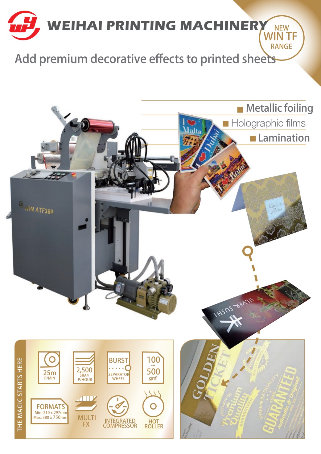 WIN-tuotemerkki on ammattimainen kiinalainen digitaalipuristinvalmistaja ja luotettava laminointi- ja foliokoneiden toimittaja, joka tarjoaa suoraan tehtaan digitaalisen painon myyntiin edullisella tehdashinnalla ja täydellä räätälöidyllä palvelulla. Jos kysyt, kuinka valita erittäin tehokas jälkipuristuskone, meidän350 mm arkkisyöttöinen laminointi- ja foliokoneja levyvalmistusvapaa laminointi- ja foliokone on paras valinta.