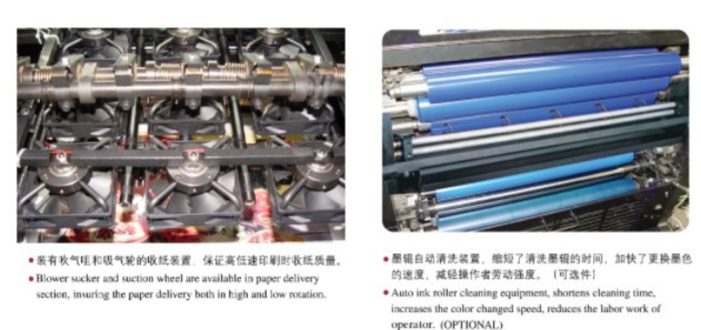 Suuri A3-neliväripakkausoffsetpainokone on suunniteltu tehokkailla moduuleilla, ja ne ovat kaikki huippulaatuisia – erittäin tarkat rullat ja hammaspyörät, vahva paperinsyöttömekanismi, erittäin tarkka paperin kohdistusjärjestelmä ja vakaa musteensyöttöjärjestelmä. Se on räätälöity vastaamaan markkinoiden vaatimuksia korkealaatuiselle, tehokkaalle ja edulliselle arkkiväritulostukselle. Sinun ei myöskään tarvitse noudattaa vain yhtä paperin paksuutta – se toimii ohuella paperilla (0,04 mm) aina paksulle pahville (0,4 mm). Mukana on myös kosketusnäytöllinen ohjaus, jossa on intuitiivinen ohjelmointiliittymä, jonka avulla voit säätää asetuksia ja tulostusparametreja älykkäällä ja suoraviivaisella tavalla.